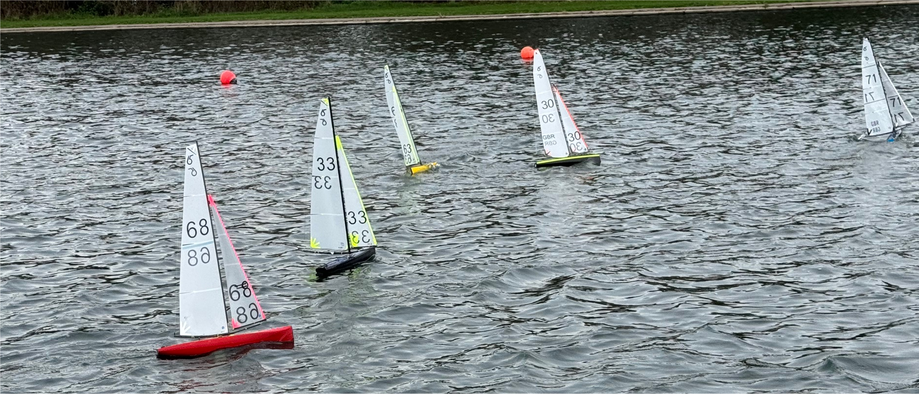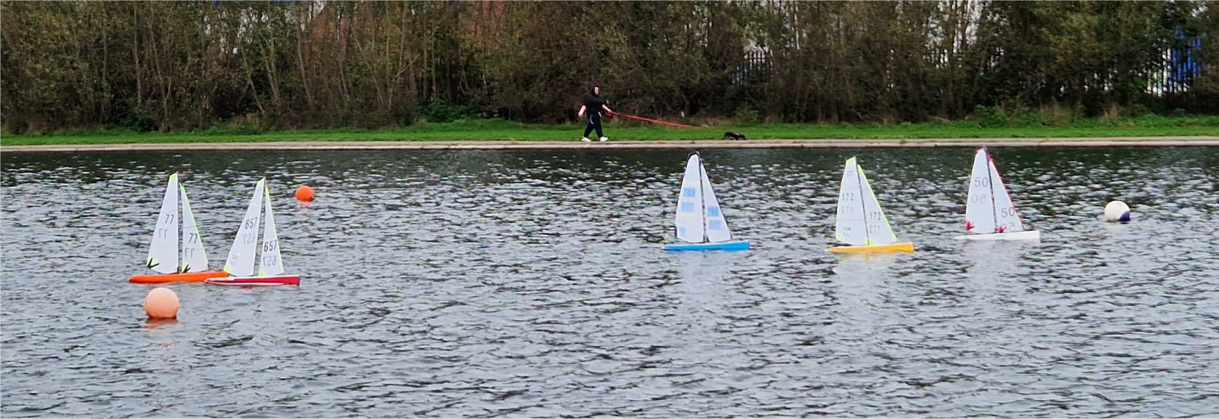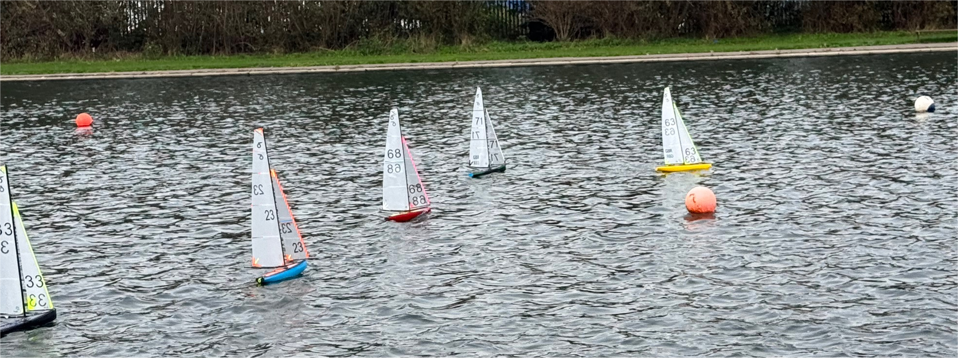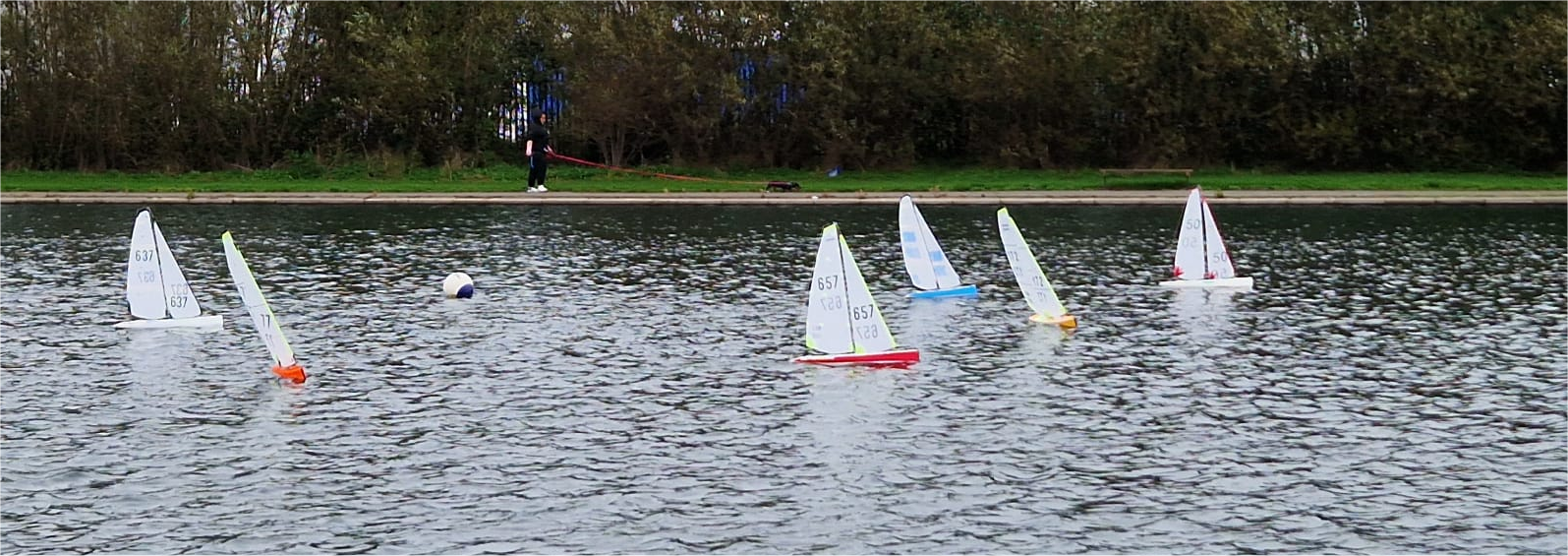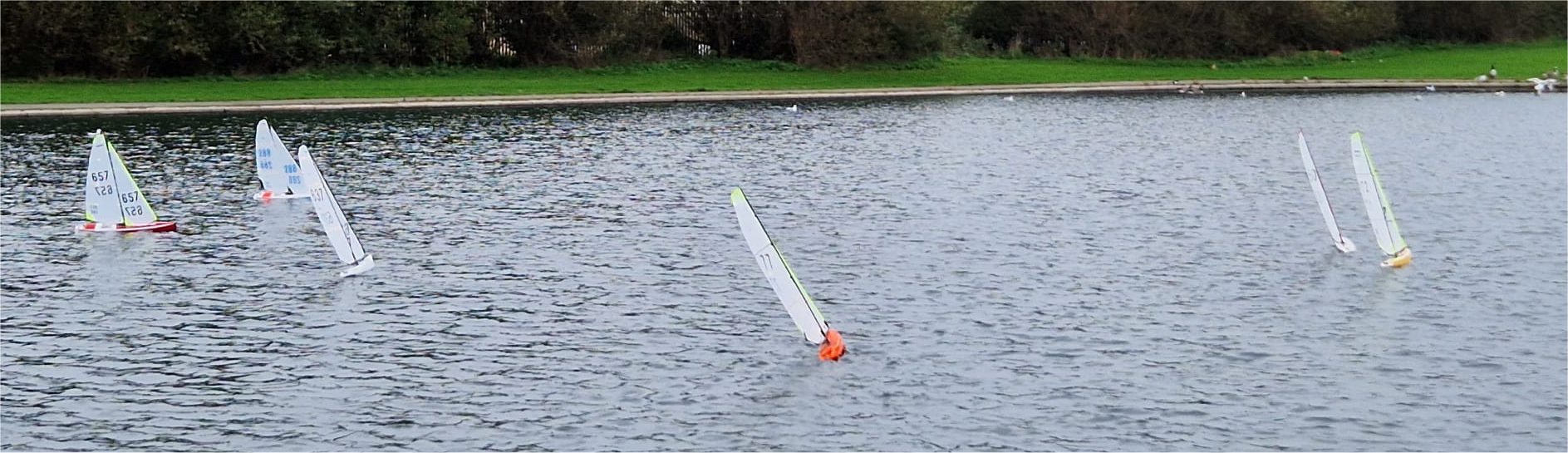 Martin had some great starts and was often well placed at the first mark, but dropped back during the one lap races to end up fifth overall.  Duncan Neale had a good start and was up with the leaders for a few races until his transmitter battery had enough and ended his day.  Fortunately, he then took over RO duties and took the photos for this session, so thanks for that Doncan.