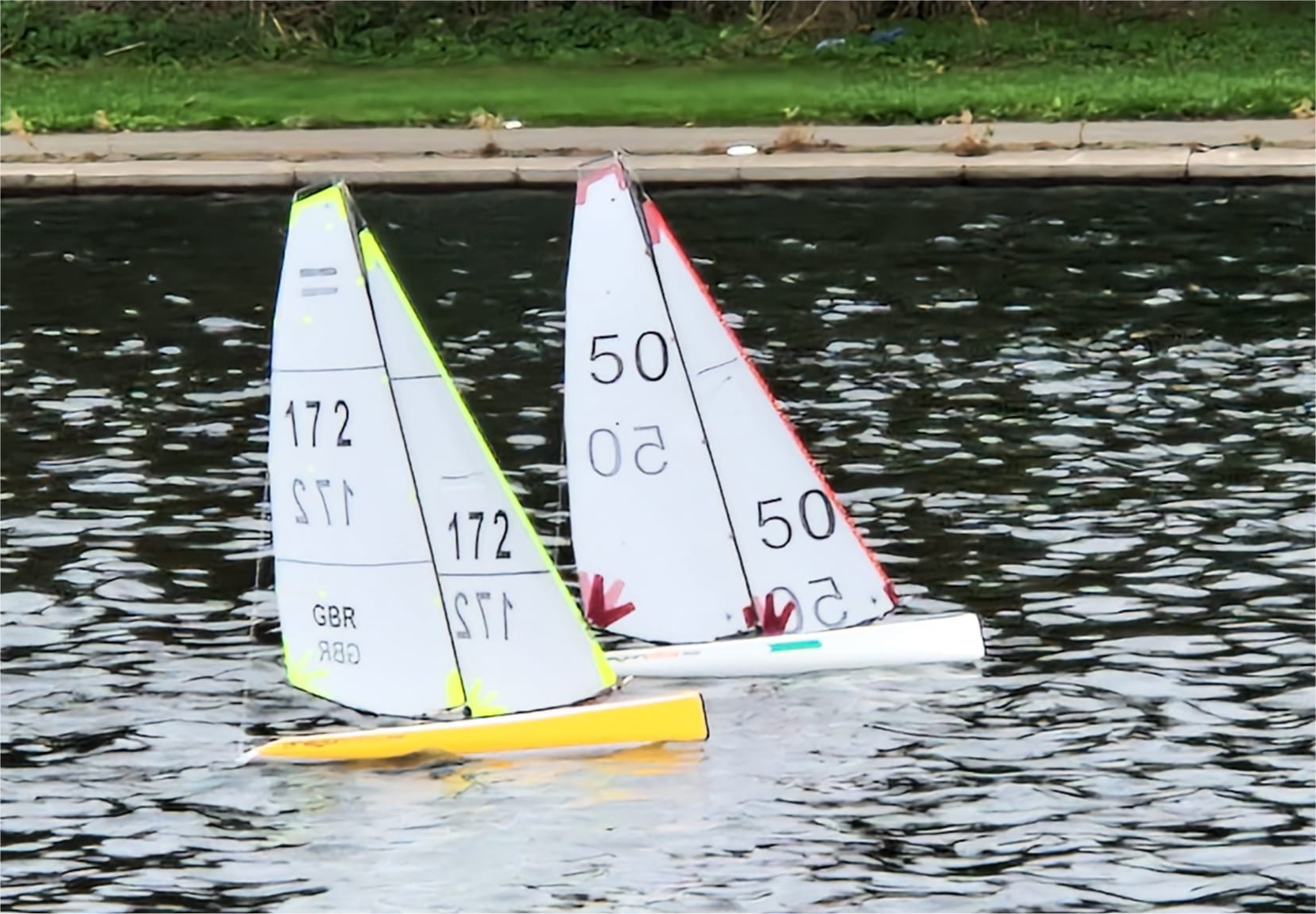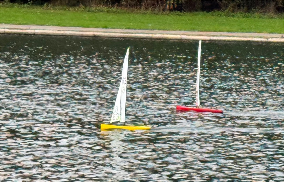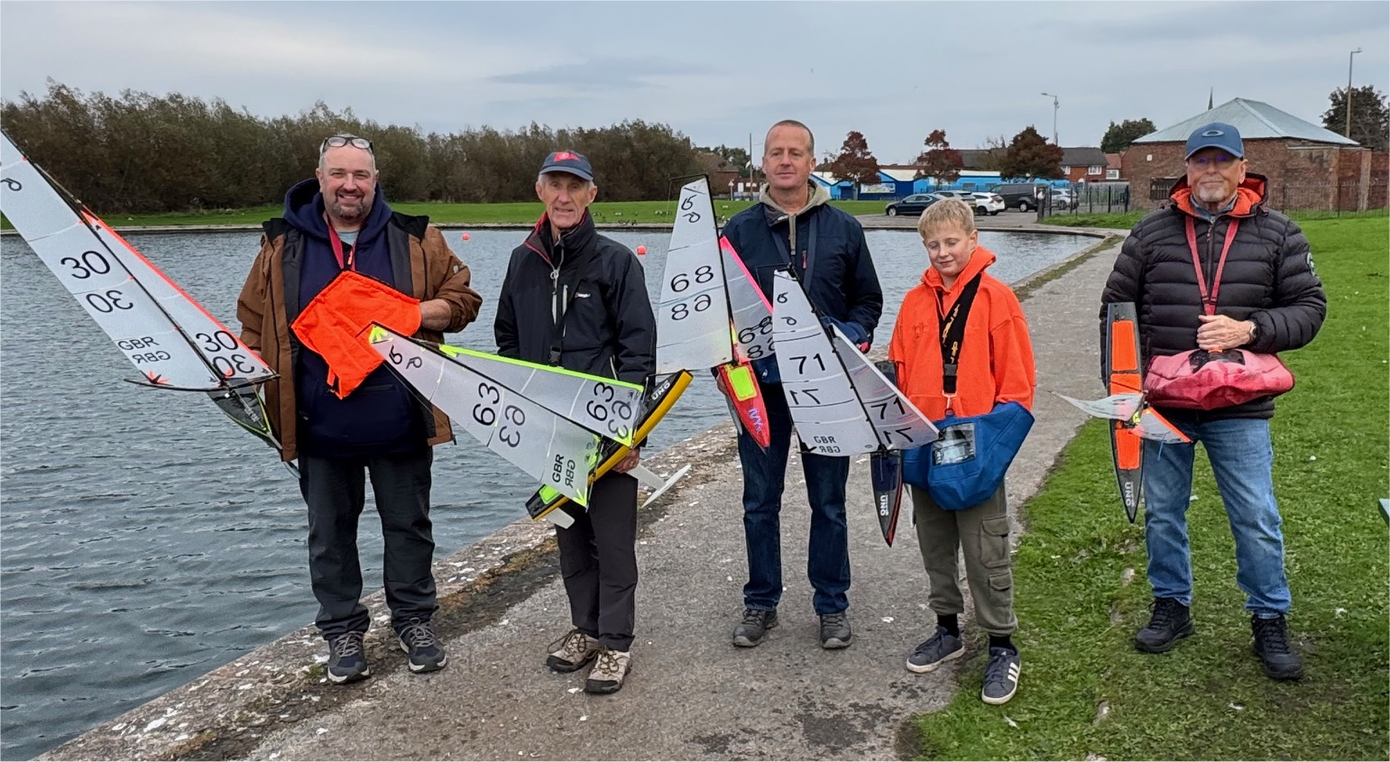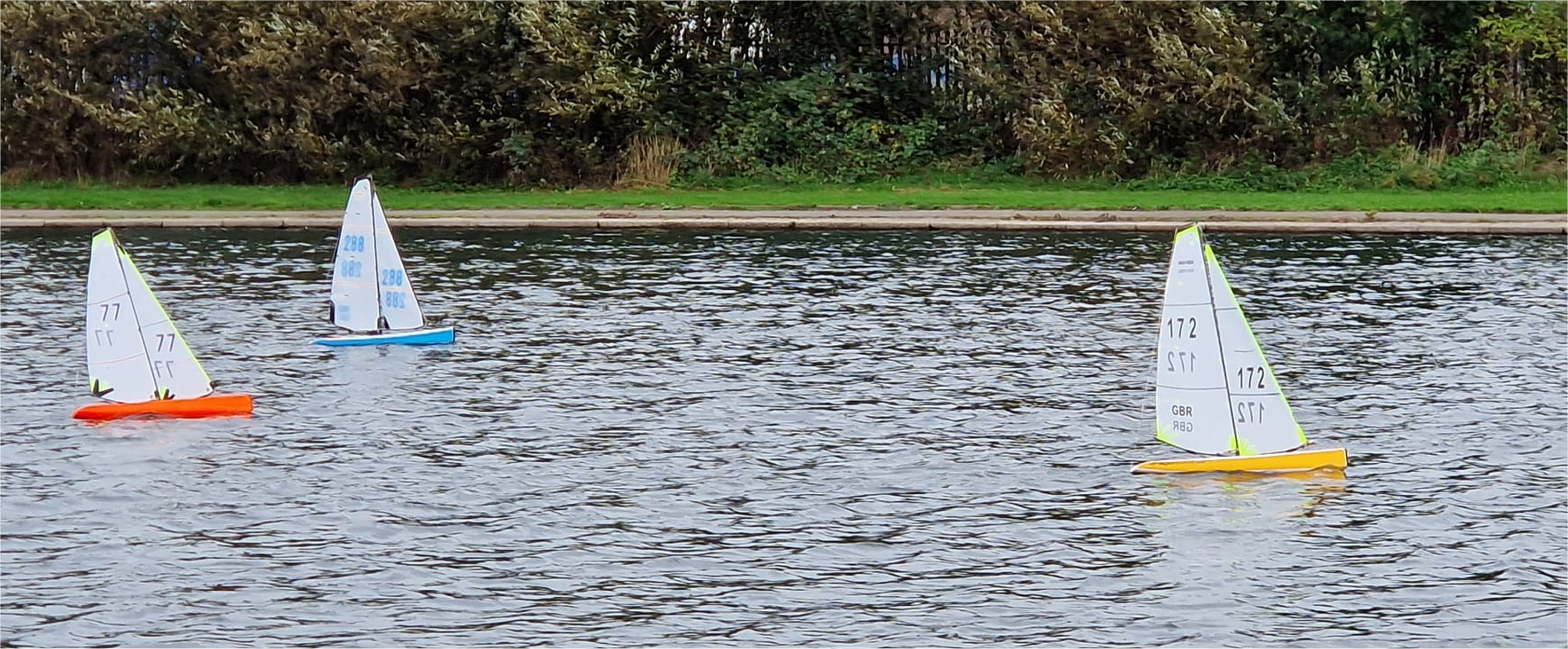 Martin had some great starts and was often well placed at the first mark, but dropped back during the one lap races to end up fifth overall.  Duncan Neale had a good start and was up with the leaders for a few races until his transmitter battery had enough and ended his day.  Fortunately, he then took over RO duties and took the photos for this session, so thanks for that Doncan.