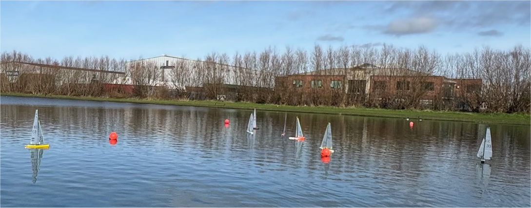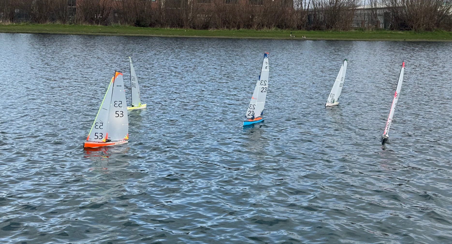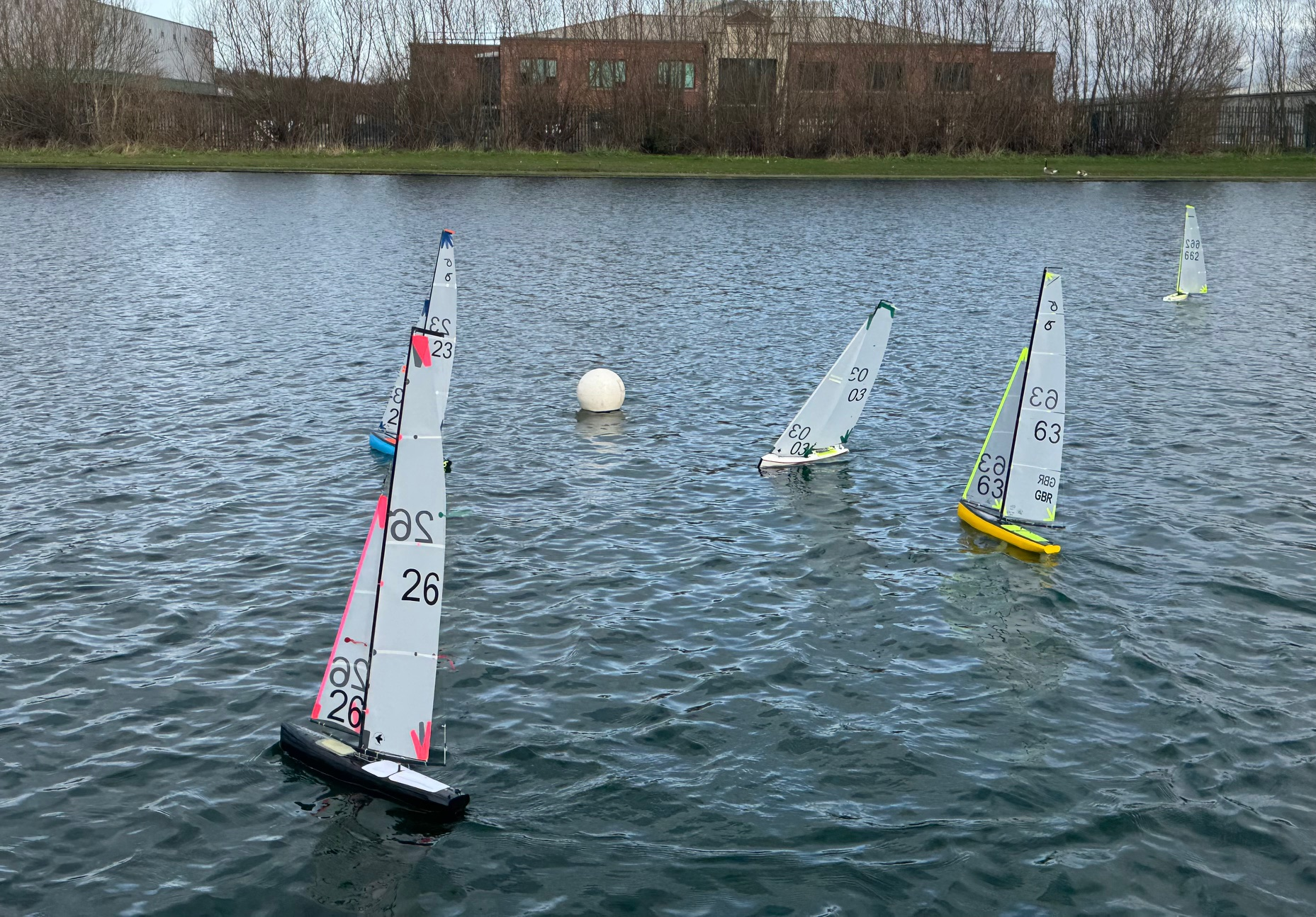 Our visitiors John Tideswell (Keighley) and Andrew Backhouse (Birmingham) were fast in coming to grips with the streaky shifts and benefitting from some tuning tips from the lead group. The proof was in a number of races leading up to and following tea break where all boats were finishing within 30 seconds of the leaders.