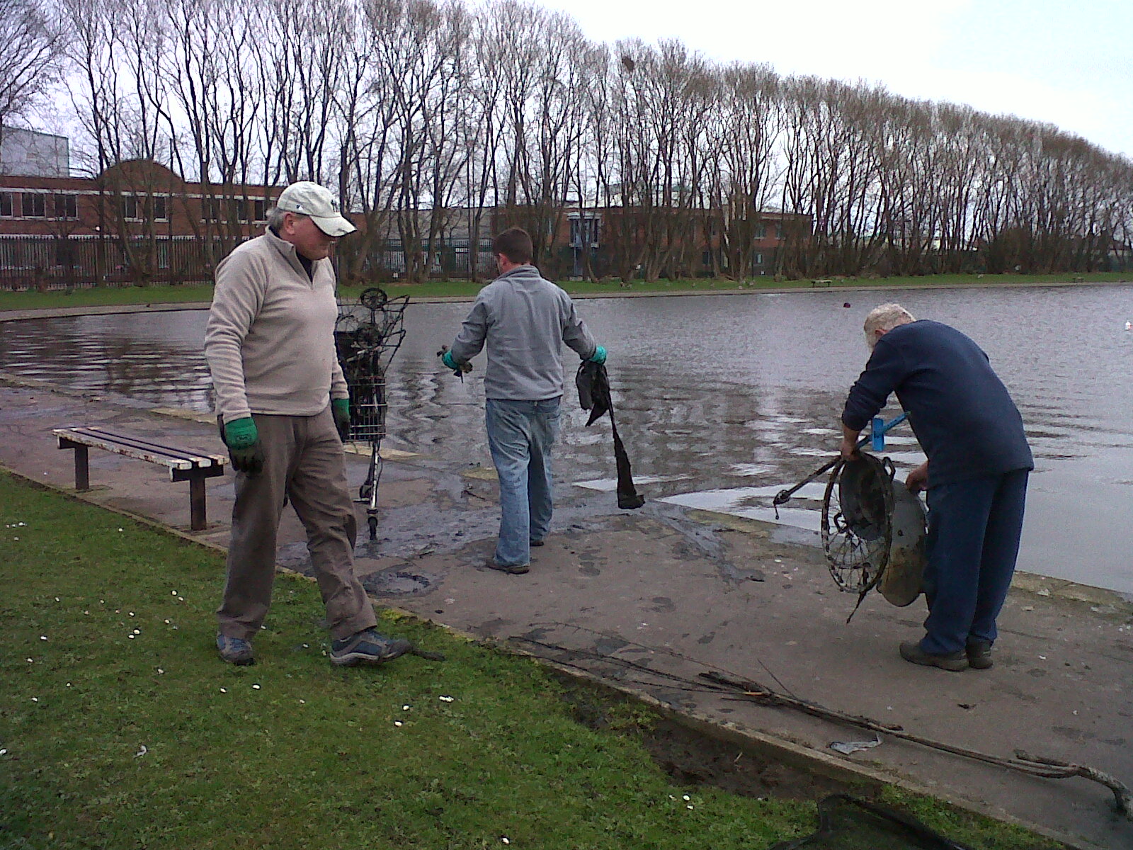 Our first scheduled lake and clubhouse clean up day was an eventful one, with close to a skip bin load of rubbish consisting of microwaves, car tyres, crutches, piping, scooters, bikes, wiring, bricks and other treats being removed from the lake.