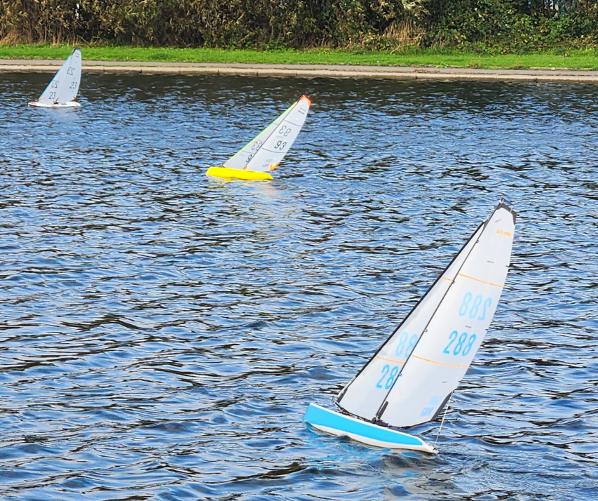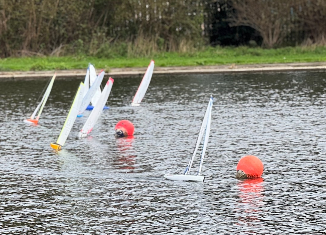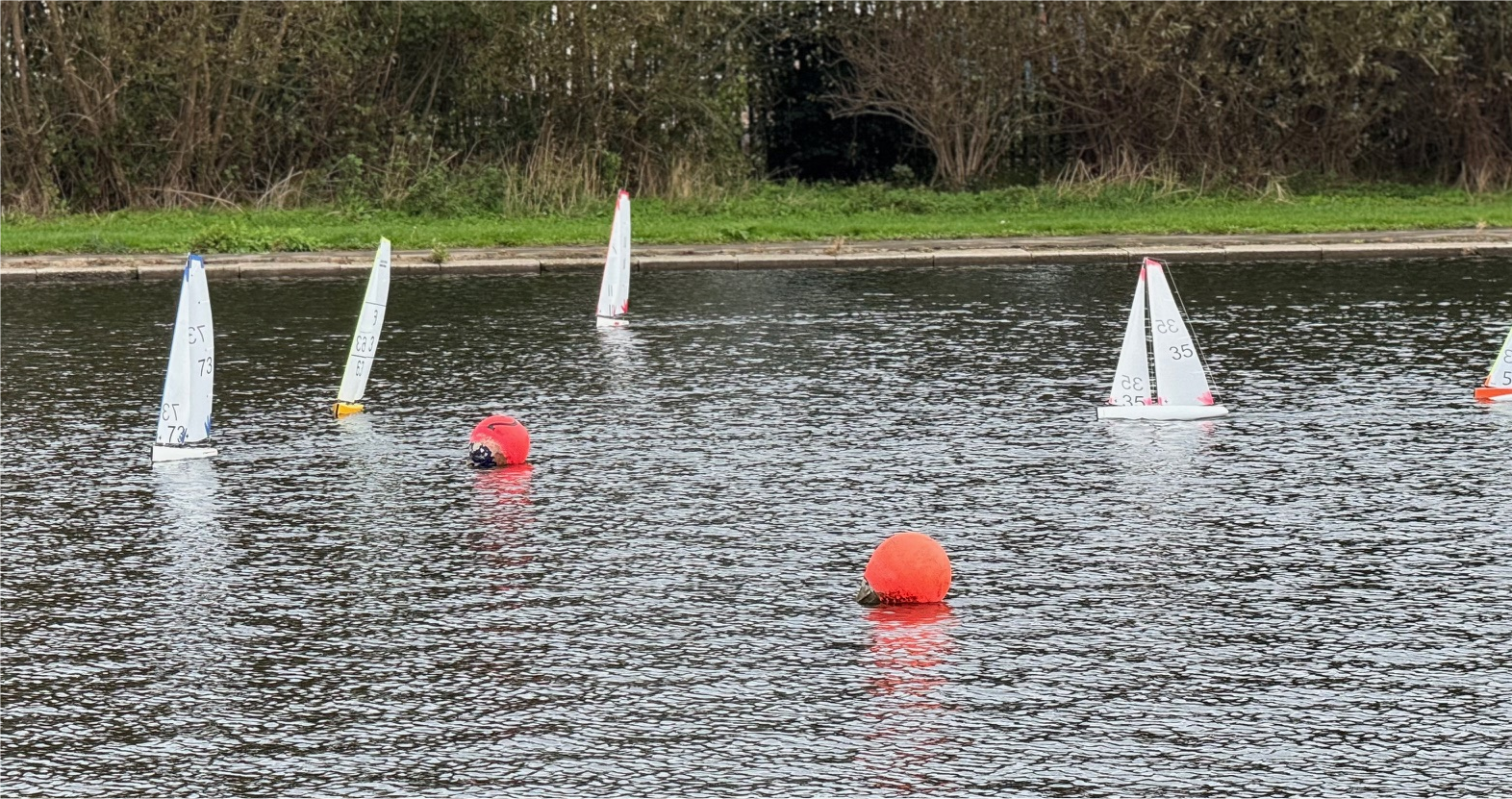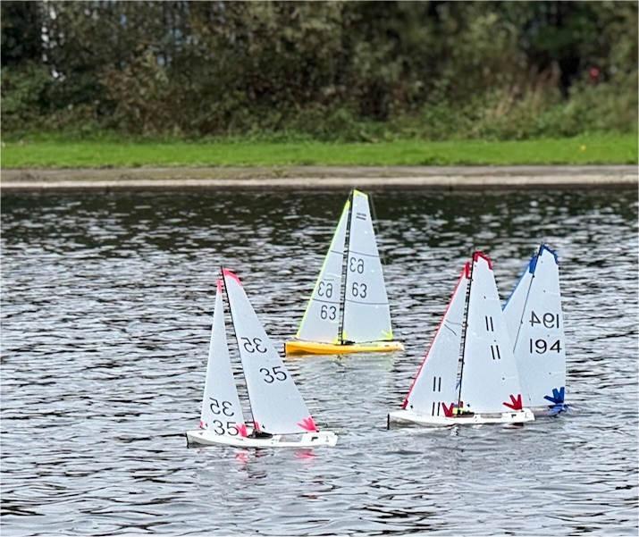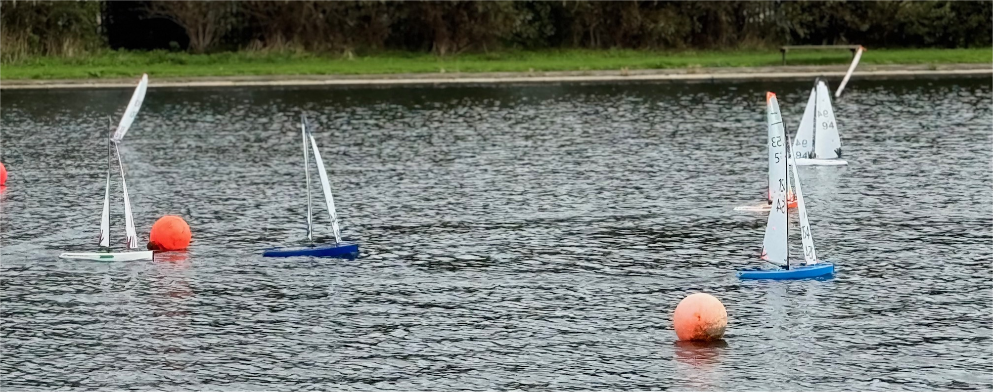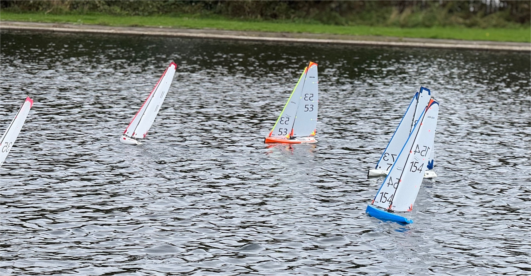 Racing was close right from the start, with Peter, Clive and Ian all showing good boat speed, and generally ahead of Alan, Duncan, John and Malcolm who were having their own private battle with the occasional skirmish into the podium positions.