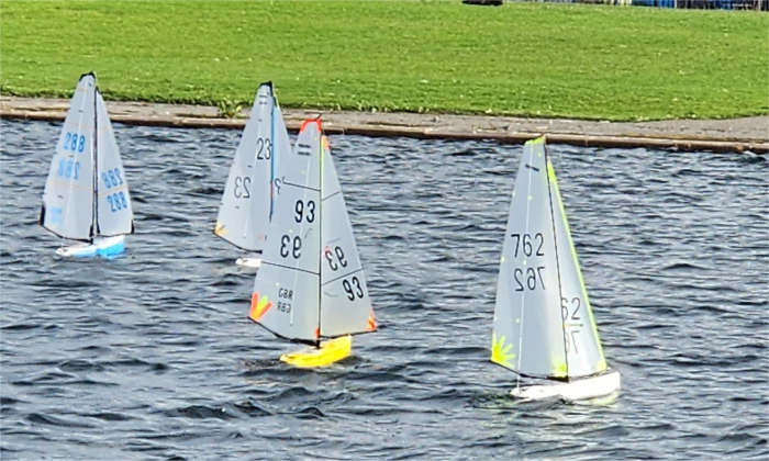 Peter was class of the field with four wins, including being tagged a couple of times so very much deserved the win. Racing was very close indeed overall, and although the wind blew more or less straight down the lake it remained very shifty, with some holes despite some quite decent pressure.