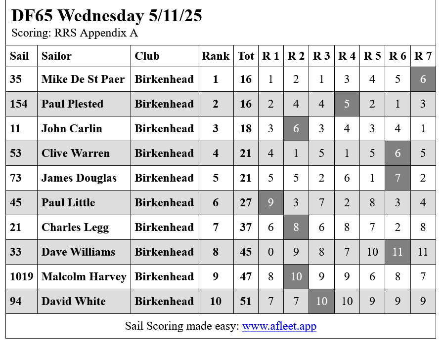 An excellent turnout of eleven 65s on a mild, overcast, and quite gusty day. Initial “tuners up” went out on A+, but it quickly became clear that A would be needed. This was the start of an interesting day of three halves, as more or less as soon as racing started some hefty gusts came through suggesting a further change to B rig.