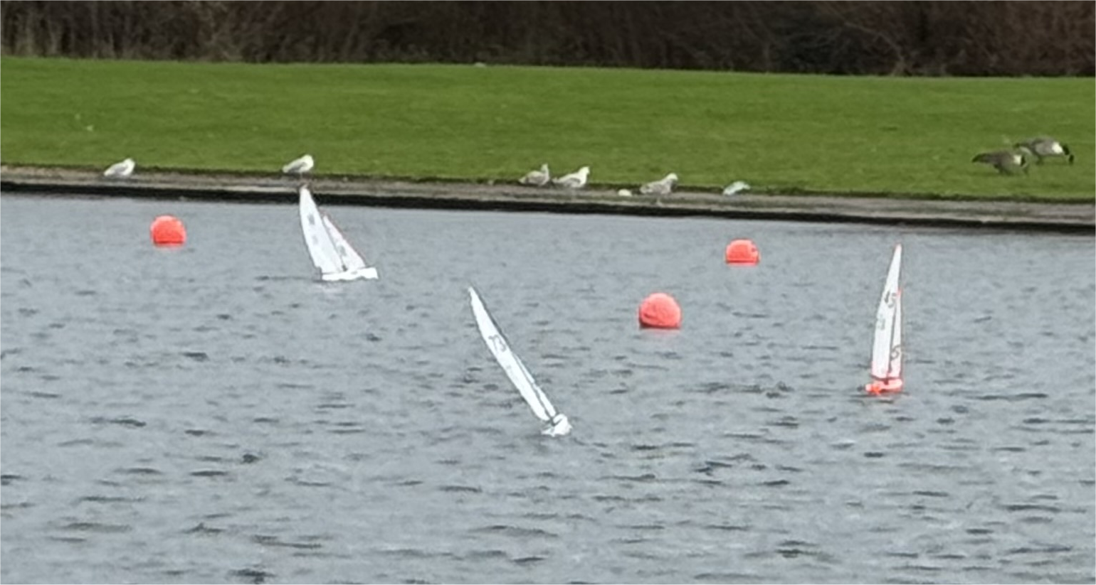 JohnC was very unlucky to be tagged while leading a race comfortably, and quite a few turns were made in the very gusty conditions changing positions.