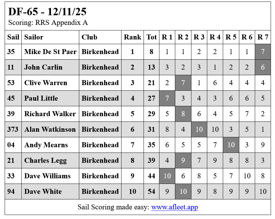 Full results as shown below with the usual thanks to Commodore Dave for moving things along, and to Malcom who kindly ROd for us and did the results as well.