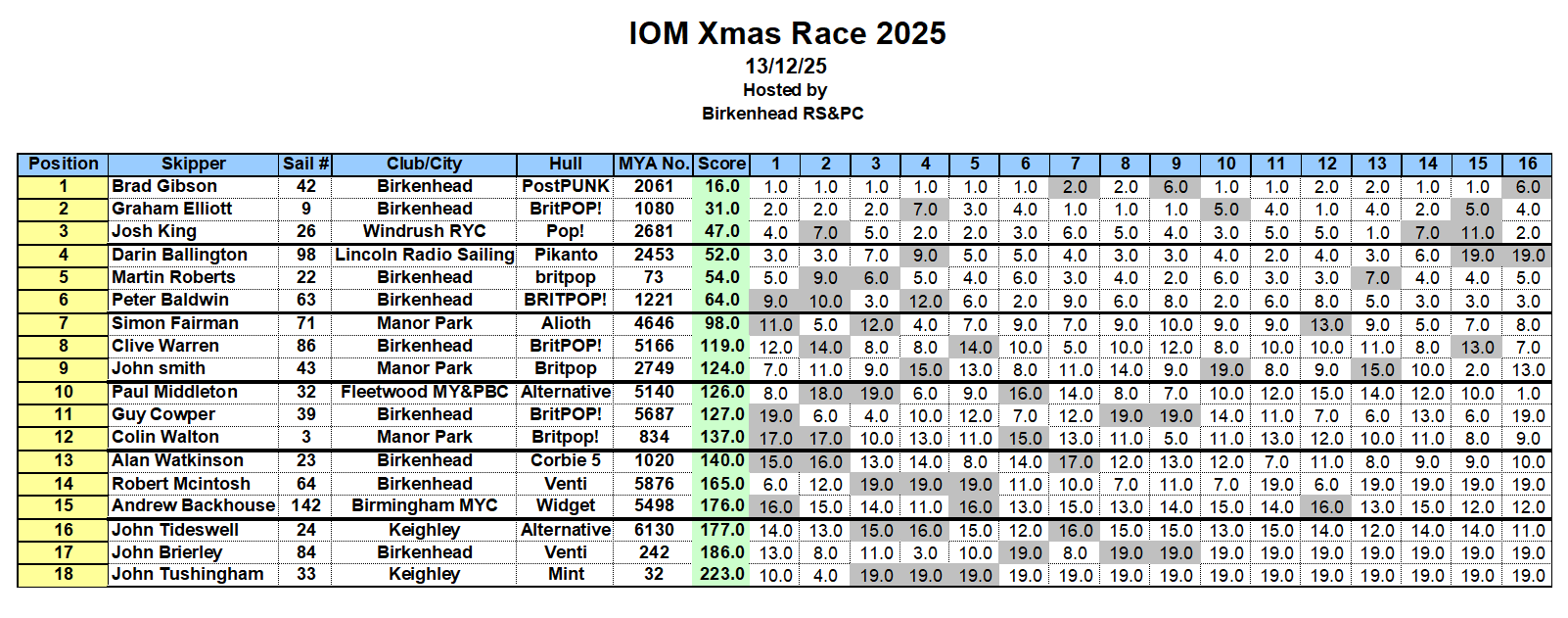 This years IOM Xmas Open attracted a decent fleet of 18 sailors including 4 of the GBR Team for the 2026 IOM Worlds, so it was always going to be a difficult day to get a good result.