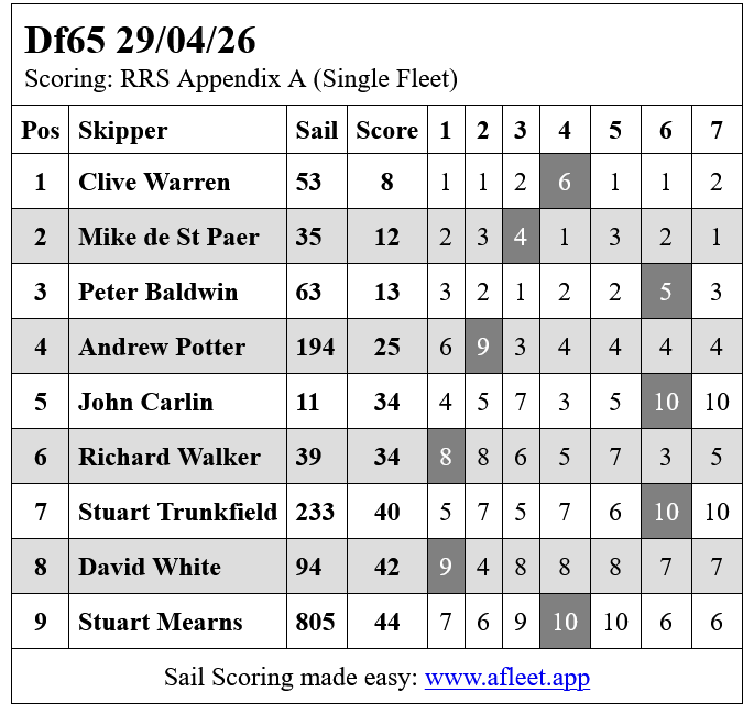 Thanks to Neil for volunteering to RO, Clive for the photos and Paul for compiling results in A fleet.